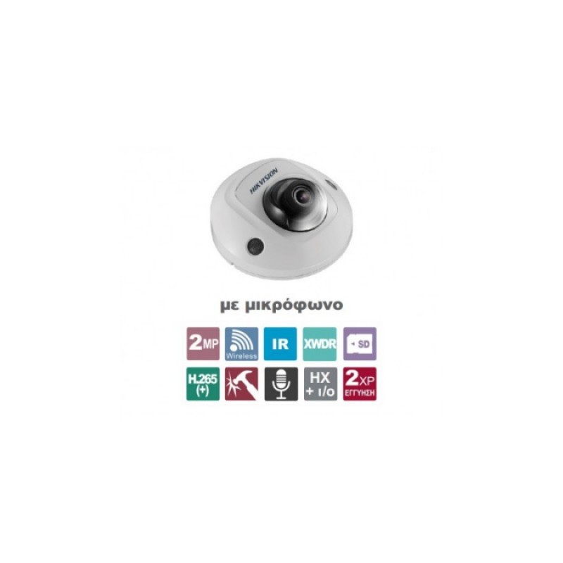 DS-2CD2543G0-IWS 2.8 Ασύρματη-ενσύρματη δικτυακή κάμερα mini Dome 4MP, εσωτερικού / εξωτερικού χώρου
