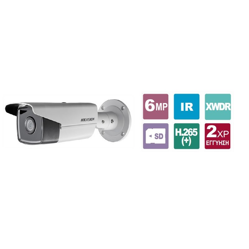 DS-2CD2T63G0-I5 2.8 Δικτυακή κάμερα Bullet 6MP, σταθερός ευρυγώνιος φακός 2.8mm