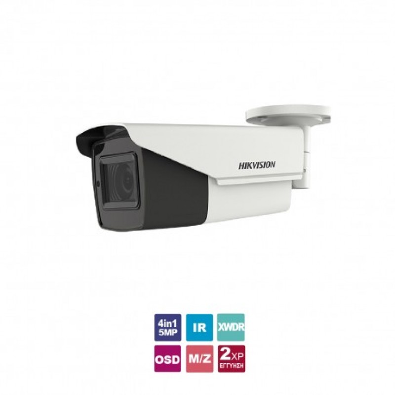 Κάμερα Bullet 4in1 5MP, εξωτερικού χώρου, με επιλεγόμενη έξοδο HDTVI/CVI/AHD/CVBS, τηλεχειριζόμενο φακό motorized zoom 2.7~13.5 mm (γωνία θέασης 29.3°~92,3°), auto focus, υπέρυθρο φωτισμό EXIR 2.0 εμβέλειας ως 80m, υψηλή ευαισθησία (ultra low light), 130 dB WDR, 3D DNR, OSD menu Up The Coax (UTC), μεταλλική, IP67, τροφοδοσία 12VDC ή 24VAC, κατανάλωση 10.5 W, (ΠxBxY) 92x255x85 mm.