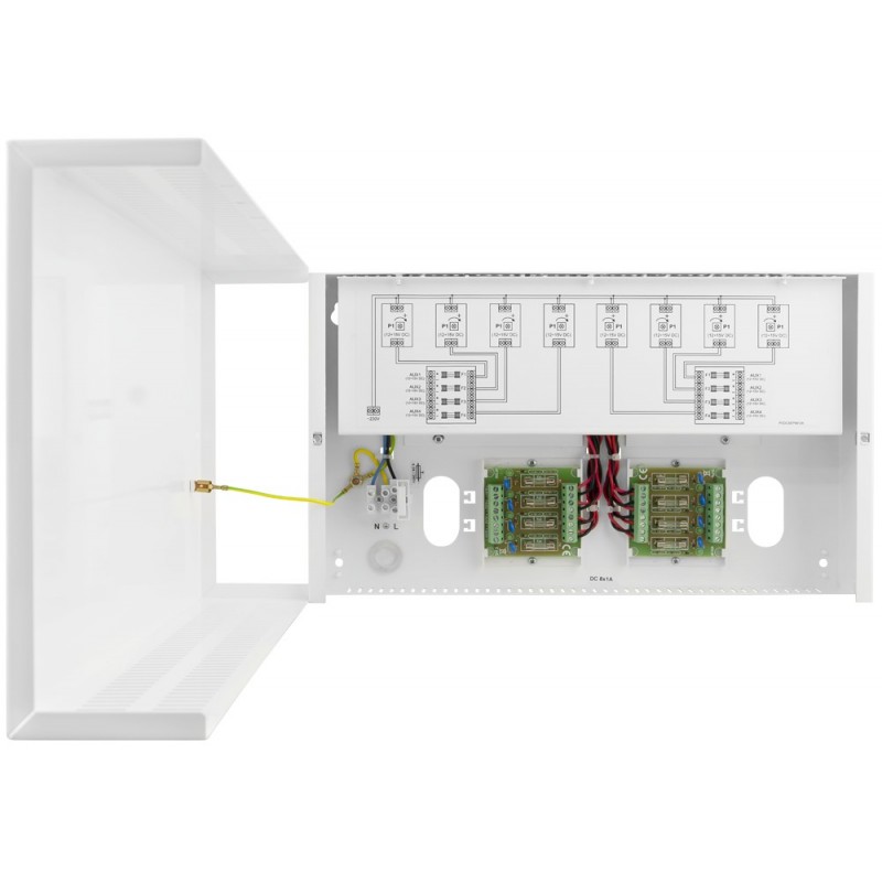 Τροφοδοτικό με 8 γαλβανικά απομονωμένες και ανεξάρτητα ρυθμιζόμενες εξόδους 12-15 VDC & 1A, με χωριστή ασφάλεια 1A σε κάθε έξοδο, (Π×Β×Υ) 365×(70+8)×220 mm.